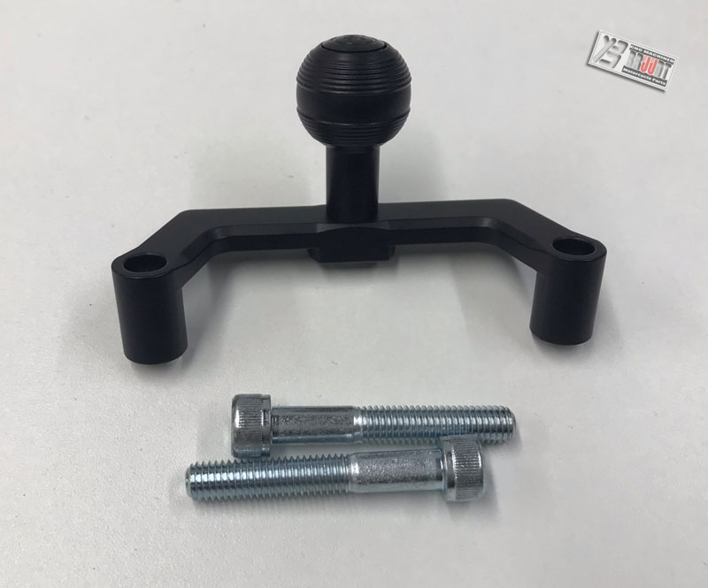 Das Teil wird mit die mitgelieferte längere M8 Schrauben im untere zwei Löcher vom Lenkeraufname montiert. Der Kugel kann damit 3 positionen haben.